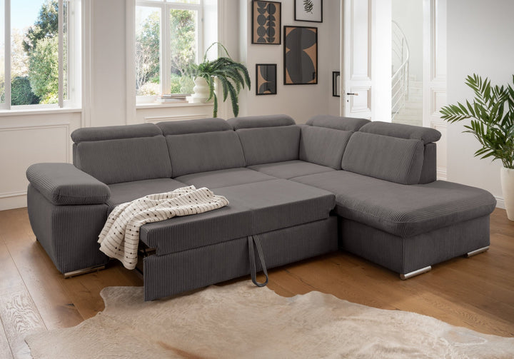 - Ecksofa mit Schlaffunktion und Kopfstützen