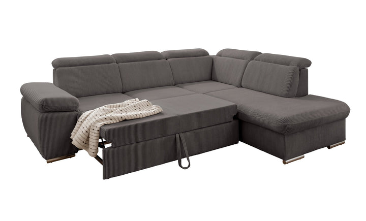 Modernes Ecksofa mit Schlaffunktion und bequemen Kopfstützen, Ottomane rechts